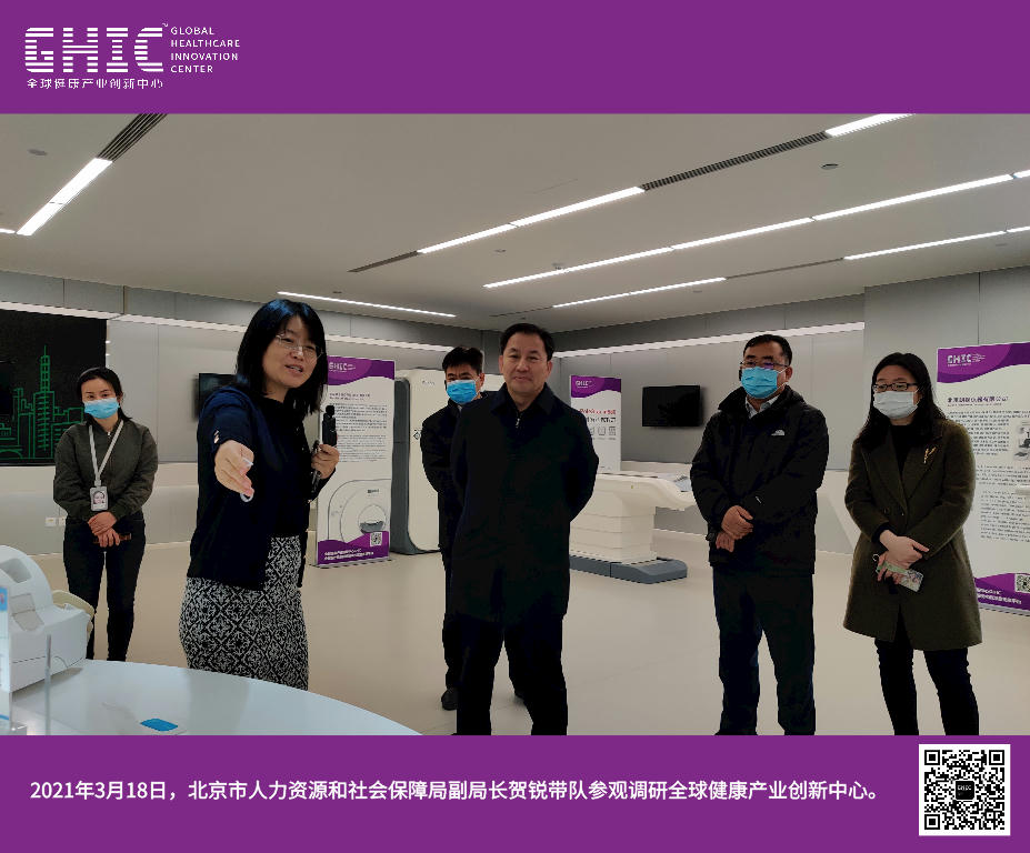 北京市人力資源和社會(huì)保障局副局長趙銳參觀全球健康產(chǎn)業(yè)創(chuàng)新中心