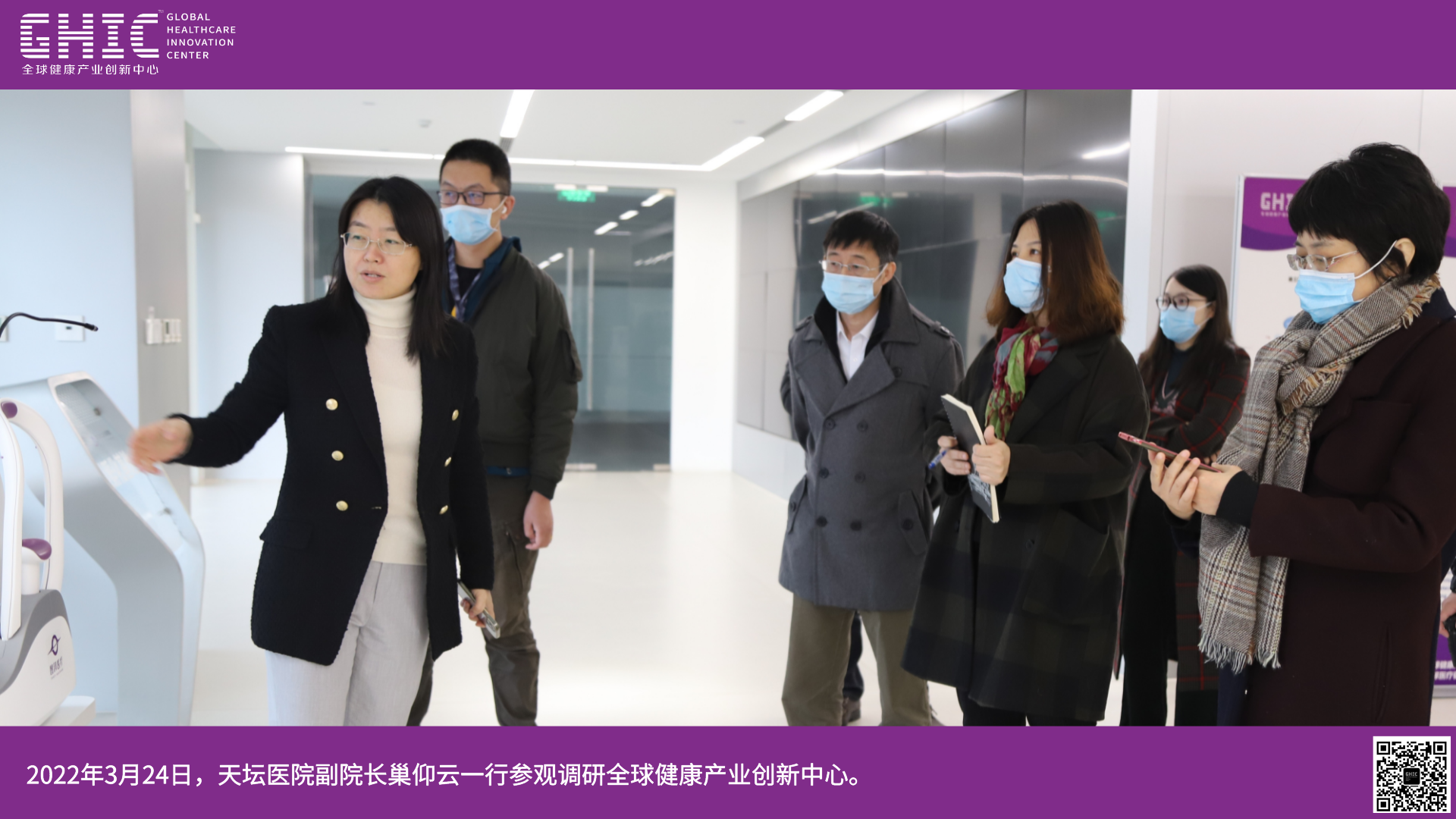 2022年3月24日,天壇醫(yī)院副院長(zhǎng)巢仰云一行參觀調(diào)研全球健康產(chǎn)業(yè)創(chuàng)新中心。