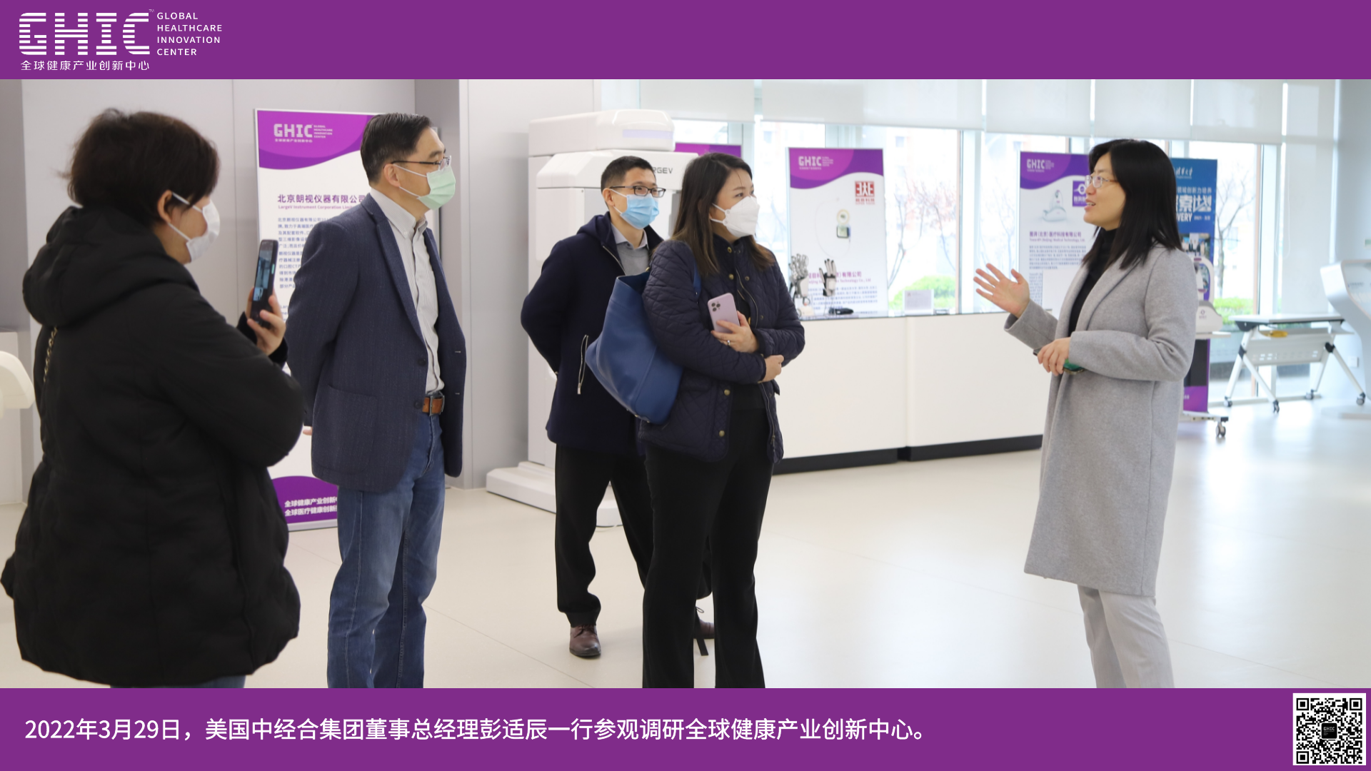 2022年3月29日,美國中經(jīng)合集團(tuán)董事總經(jīng)理彭適辰一行參觀調(diào)研全球健康產(chǎn)業(yè)創(chuàng)新中心。