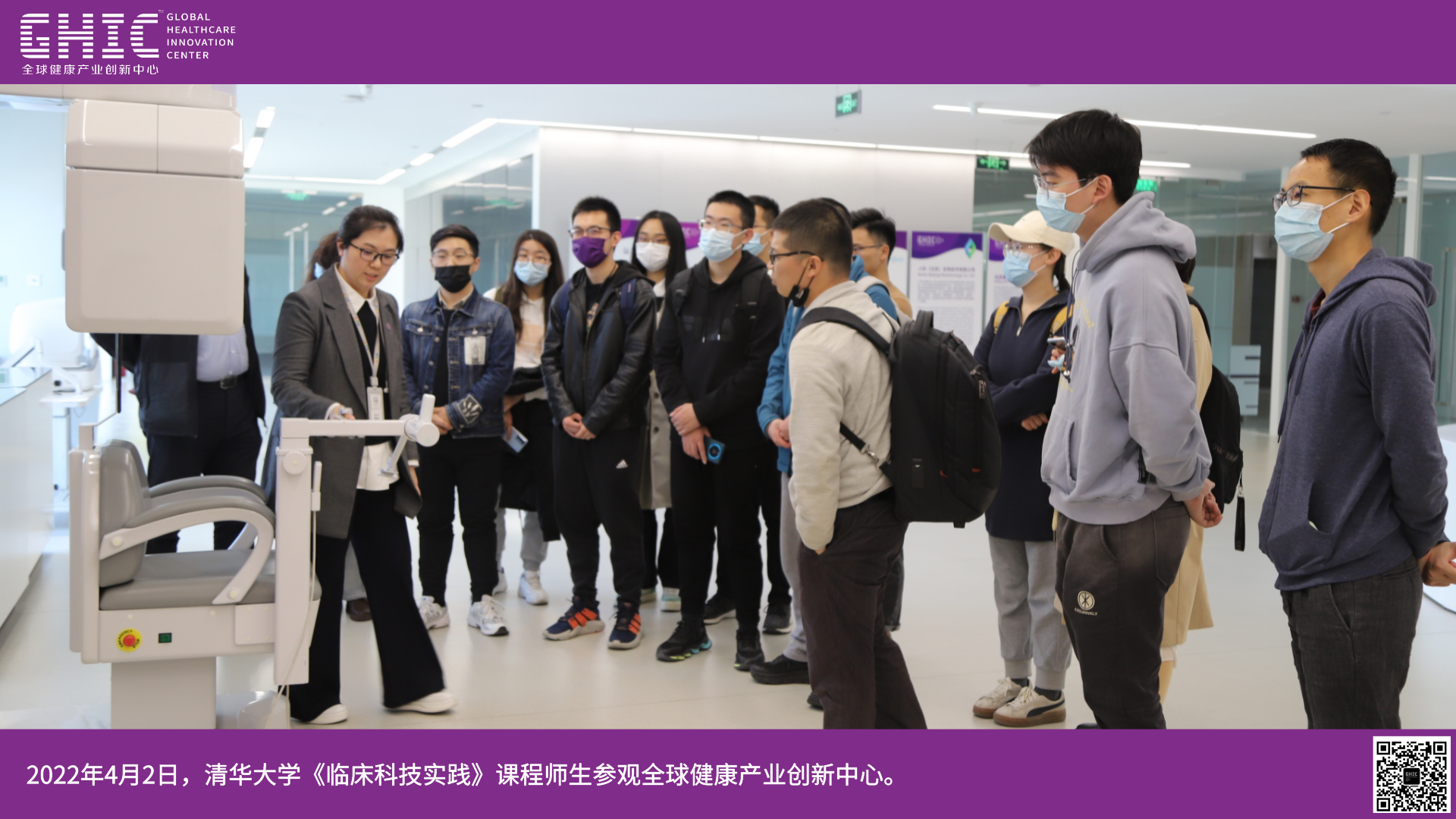 2022年4月2日,清華大學(xué)《臨床科技實踐》課程師生參觀全球健康產(chǎn)業(yè)創(chuàng)新中心。