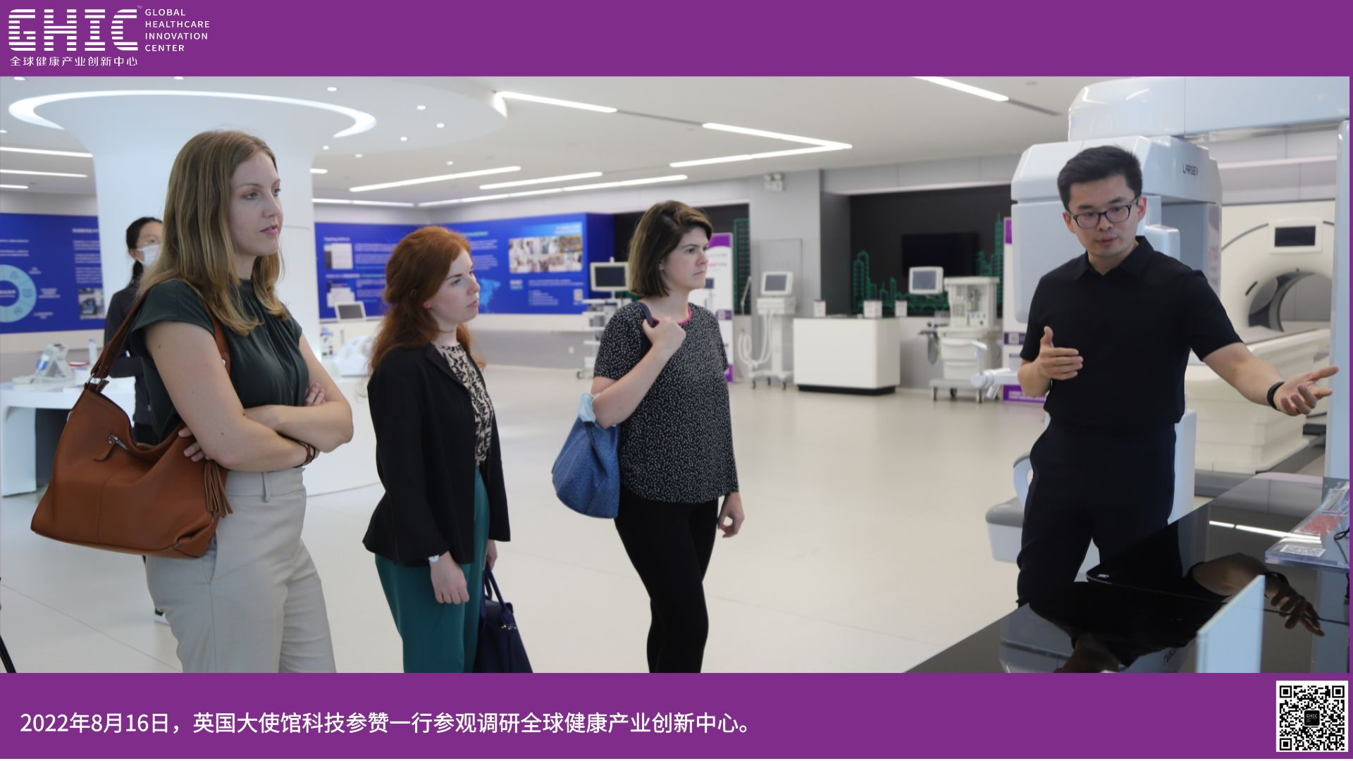 2022年8月16日,英國大使館科技參贊一行參觀調(diào)研全球健康產(chǎn)業(yè)創(chuàng)新中心。