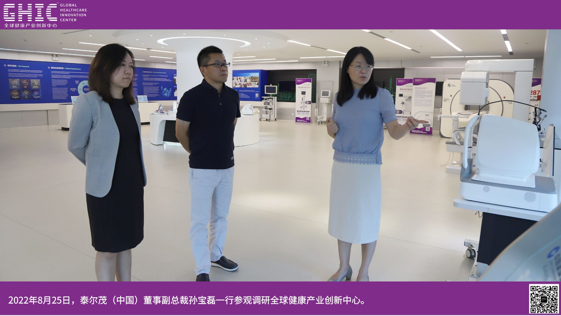 2022年8月25日,泰爾茂(中國)董事副總裁孫寶磊一行參觀調研全球健康產業(yè)創(chuàng)新中心。