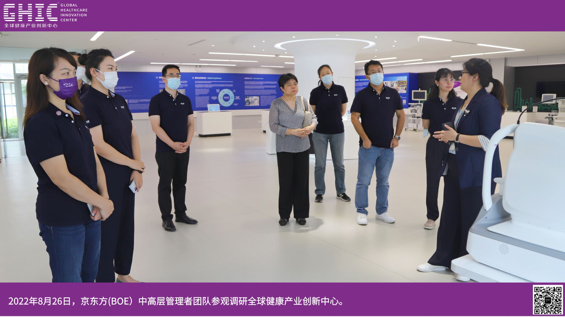 2022年8月26日,京東方(BOE)中高層管理者團(tuán)隊(duì)一行參觀調(diào)研全球健康產(chǎn)業(yè)創(chuàng)新中心。