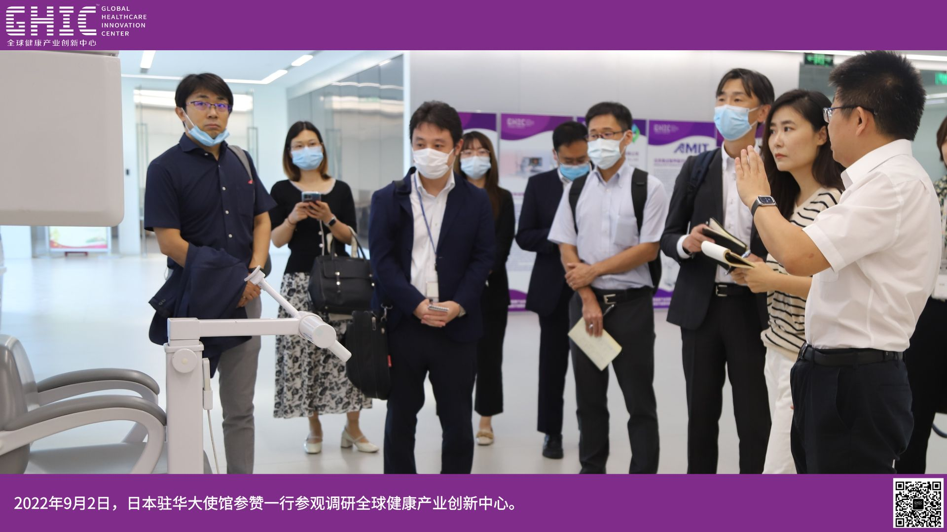 2022年9月2日,日本駐華大使館參贊一行參觀調(diào)研全球健康創(chuàng)業(yè)創(chuàng)新中心。