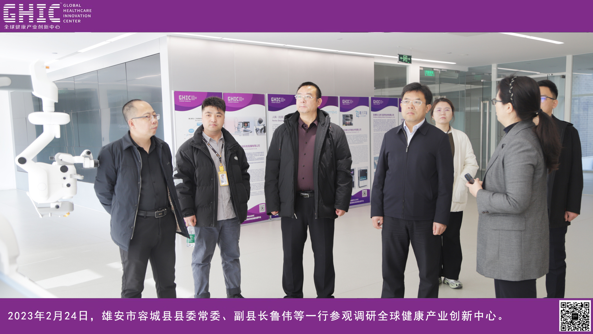 2023年2月24日,雄安市容城縣縣委常委、副縣長魯偉等一行參觀調(diào)研全球健康產(chǎn)業(yè)創(chuàng)新中心。