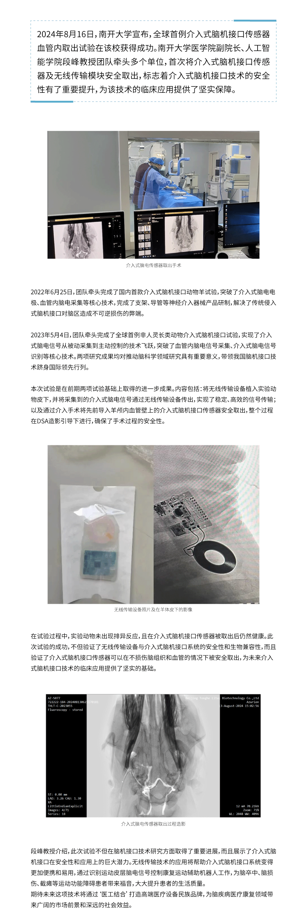 科技動態(tài)|全球首例介入式腦機接口傳感器血管內(nèi)取出試驗完成