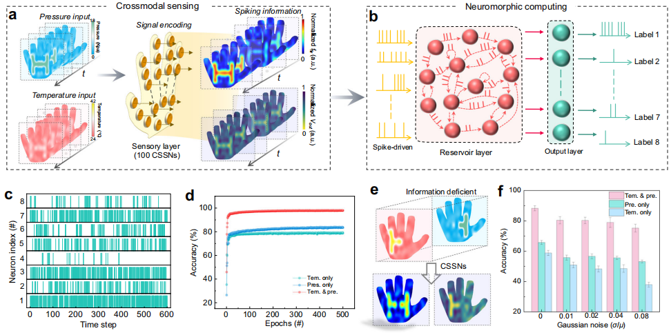 Fig. 5 | Crossmodal in-sensor spiking reservoir computing for object recogni tion and feedback.