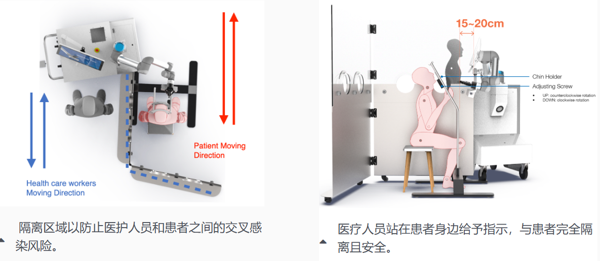 在機(jī)器人的協(xié)助下,可以由醫(yī)護(hù)人員進(jìn)行采樣工作。在整個(gè)過(guò)程中,進(jìn)行拭子采樣和消毒需要5分鐘,幫助減輕醫(yī)療人員在高傳染性環(huán)境中的心理壓力。