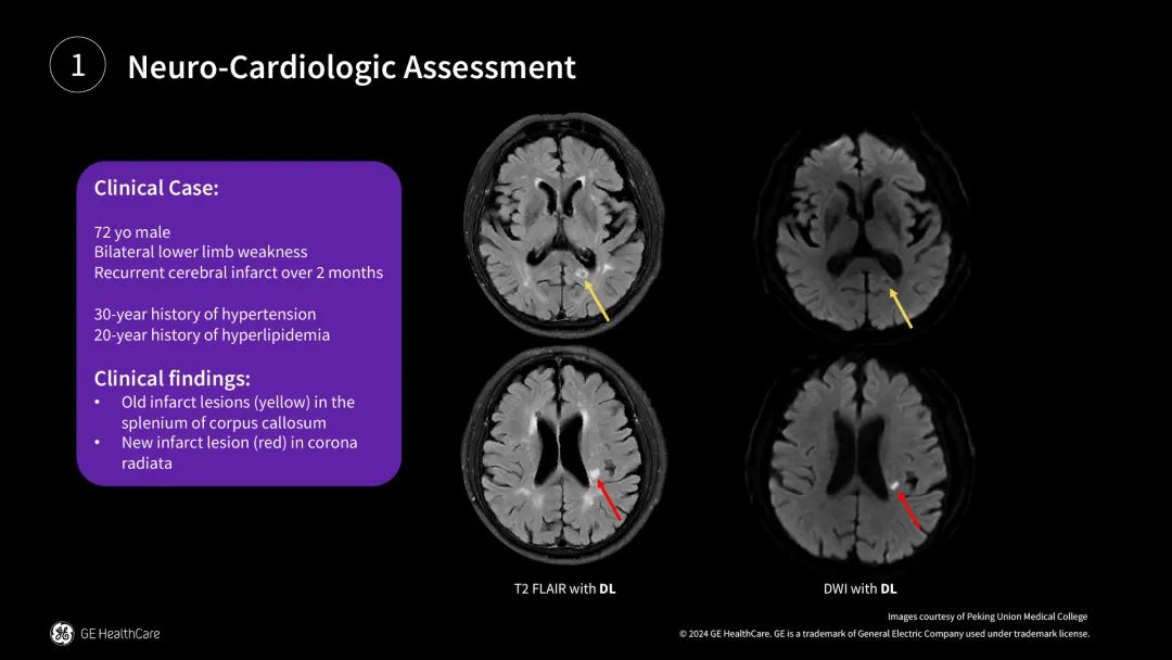 診斷挑戰(zhàn):72歲老年患者,因下肢無(wú)力反復(fù)腦梗入院通過(guò)磁共振頭顱平掃能夠敏感發(fā)現(xiàn)左側(cè)胼胝體壓部陳舊腦梗死灶,也能檢出左側(cè)放射冠新發(fā)腦梗死灶。