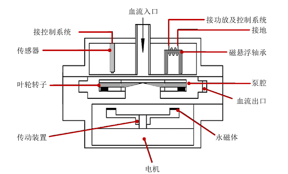 圖.離心式磁懸浮血泵結構示意圖