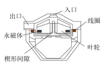 TMUD等多個單位合作設計的TinyPump是一種液力懸浮的血泵,結構如圖所示,其液力懸浮主要是在葉輪與血泵中心的圓柱處的楔形間隙形成動壓液膜實現(xiàn)血泵的液力懸浮。該血泵用于具有心臟疾病的幼兒。血泵的葉輪與主軸間存在楔形間隙,在血泵運轉時楔形間隙間可以形成液膜使葉輪懸浮。