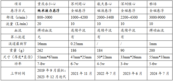 第三代LVAD技術參數(shù)對比