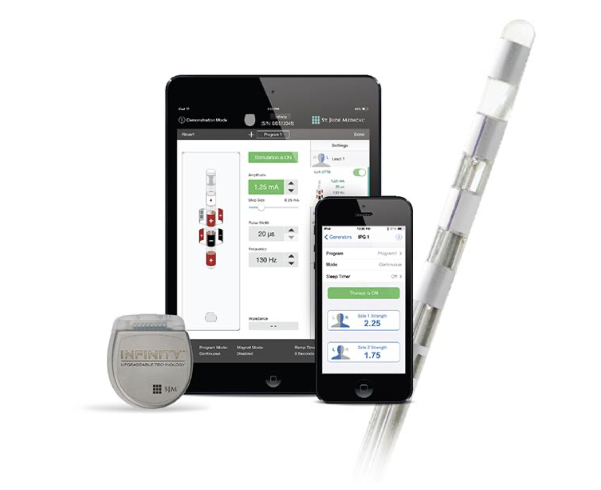 美國雅培(Abbott,收購自St. Jude Medical)推出的Infinity系統(tǒng)在無線程控和影像引導(dǎo)方面具備優(yōu)勢,通過藍牙連接iOS設(shè)備,方便患者與醫(yī)生遠程調(diào)整刺激參數(shù)。其支持多種波形刺激,如從脊髓刺激借鑒的BurstDR,有望減少刺激所致副作用。